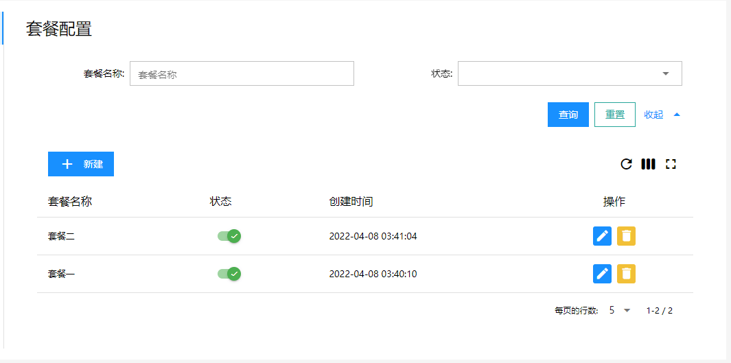 新建套餐