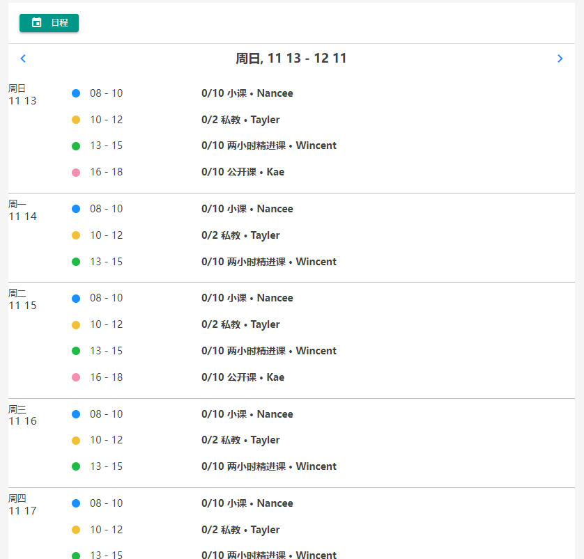 若有 课程管理-排课(列表)-查看全部 权限,则可以看到所有的排课信息