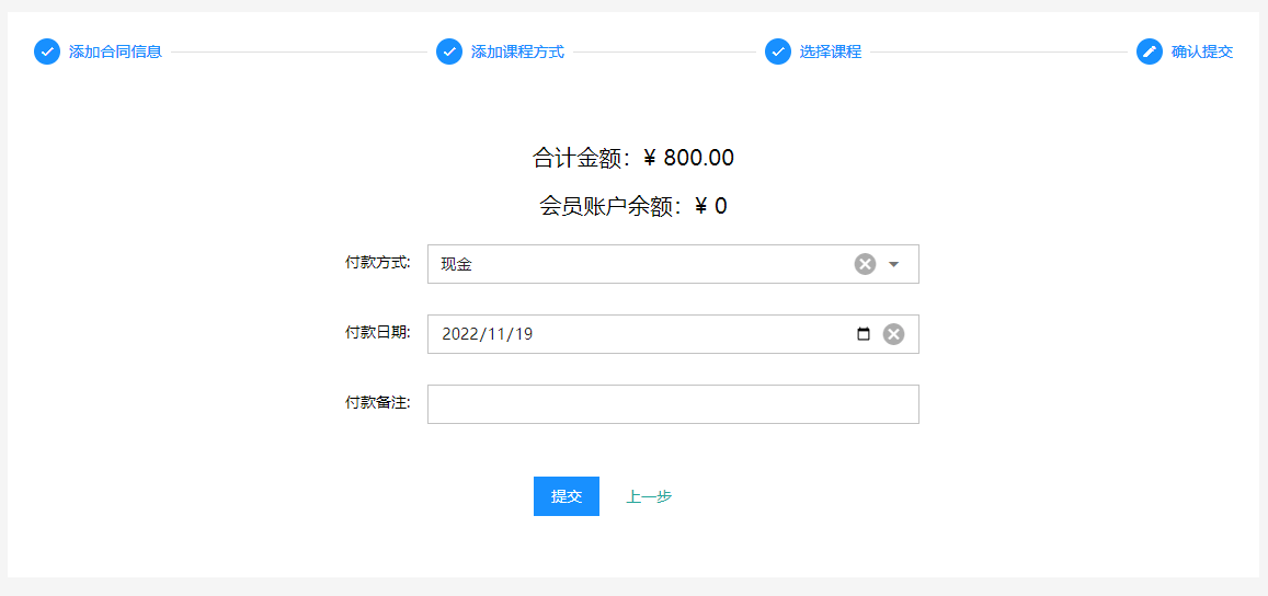 输入课次和优惠单价后,点击空白处、由系统计算出总金额