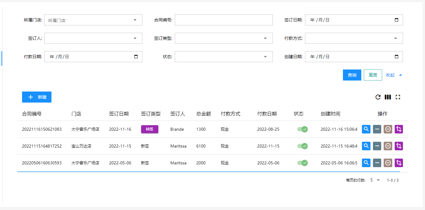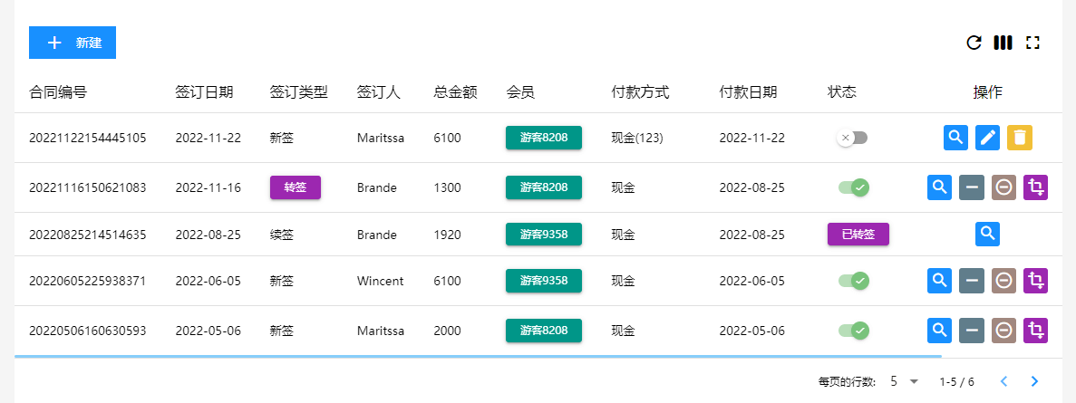 包含会员所有合同的变动记录,默认按操作时间降序排列