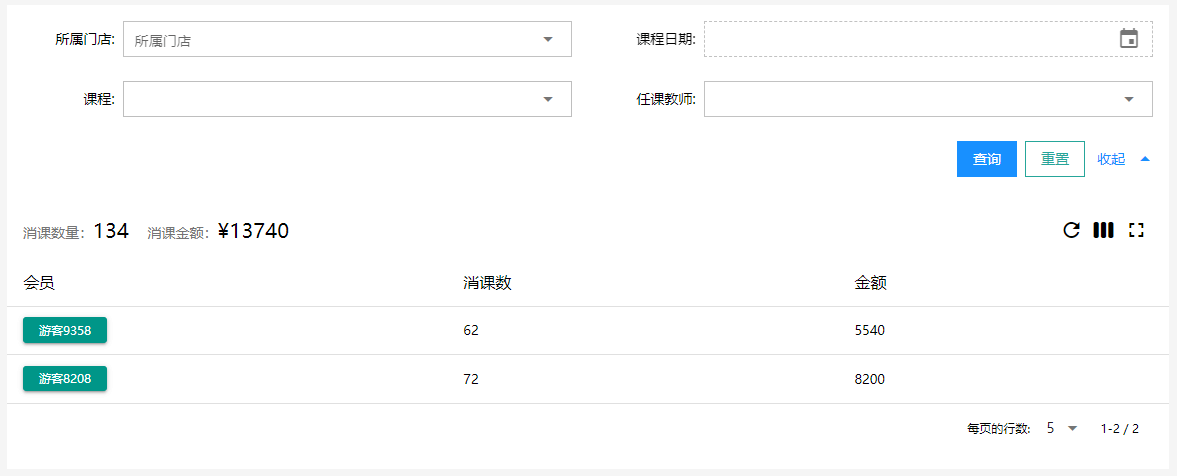 统计一段时间内教师的上课收入,用于计算提成奖励等。