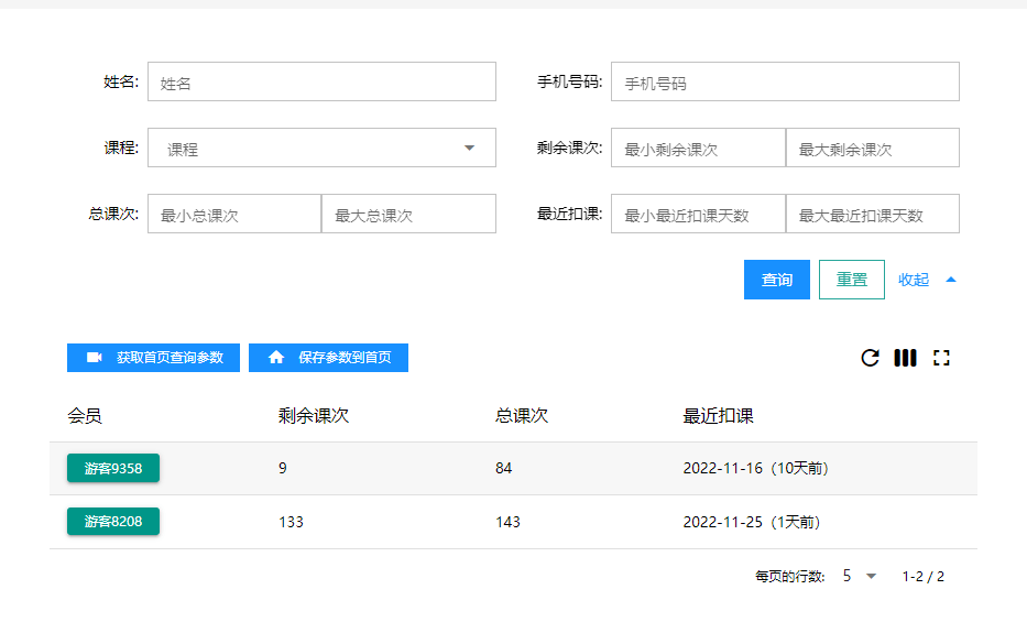 保存到首页后您可以更方便的关注剩余课次低于一定节数的会员,及时提醒其继续充值课程