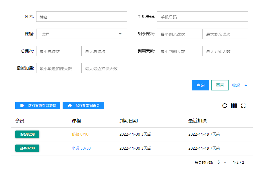 检索课程到期时间符合条件的会员