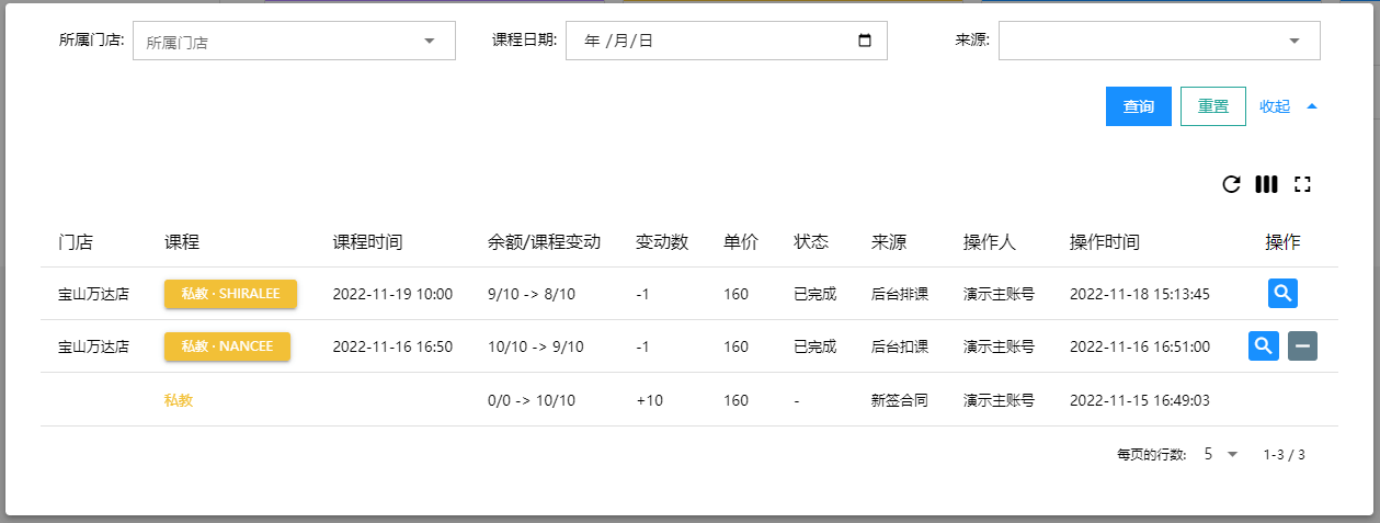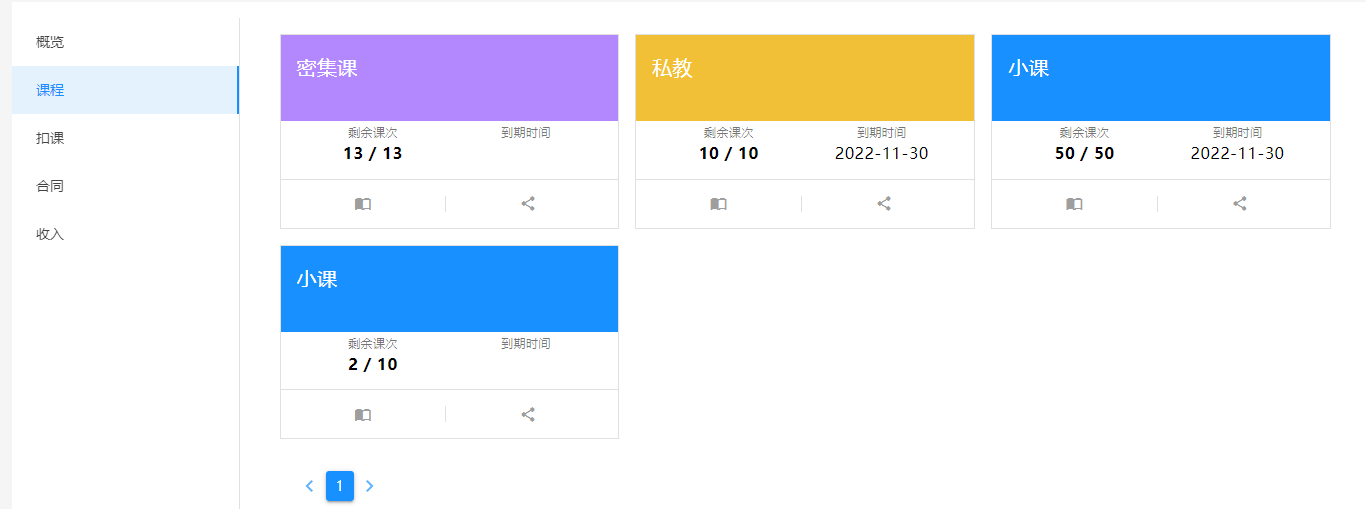 - 剩余课次:还有剩余课次的课程会按照合同签订时间优先排列在前
