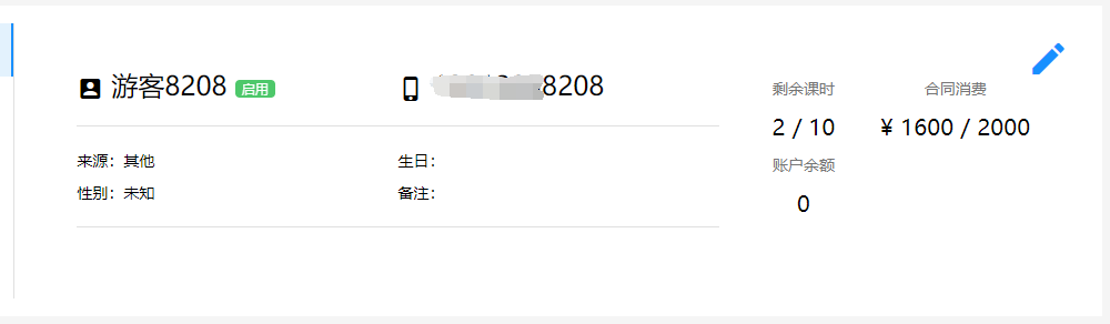 合同消费:统计会员购买合同的 未扣课金额 / 已购课程金额